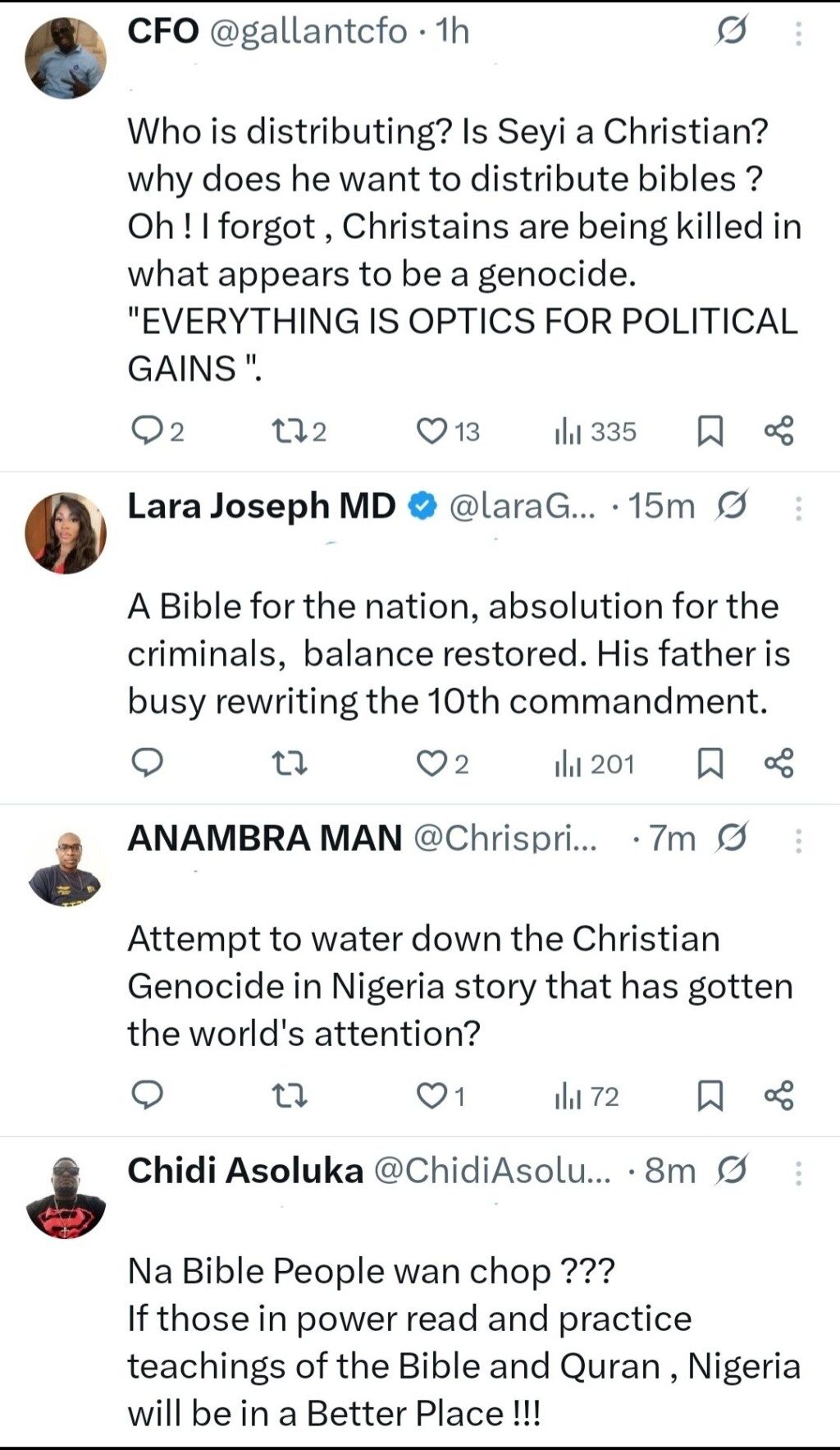 Nigerians have reacted to the news that one million copies of the Holy Bible are to be distributed across Nigeria in honour of Seyi Tinubu, son of President Bola Ahmed
