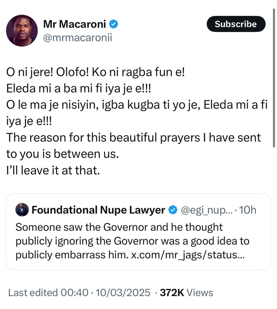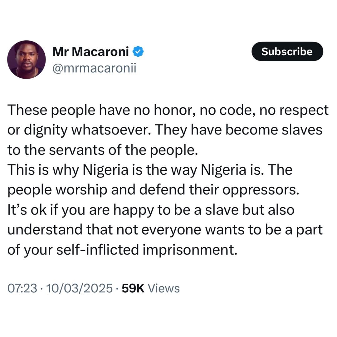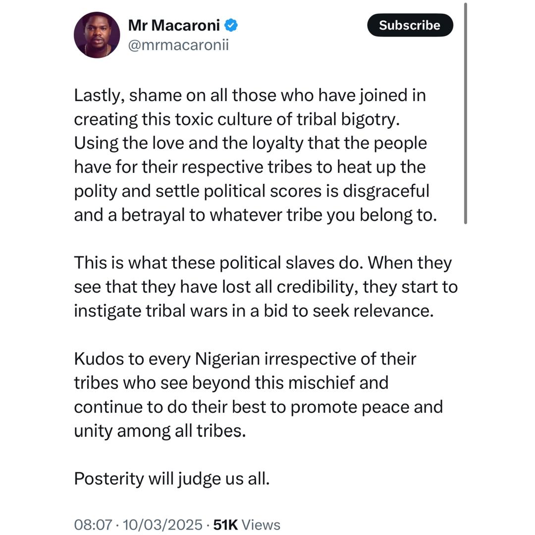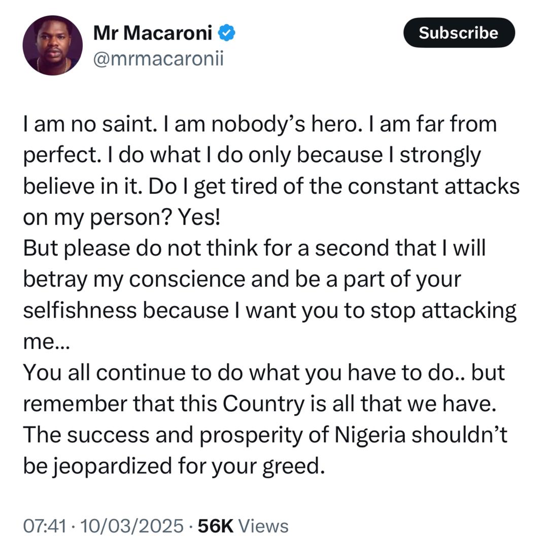 Mr. Macaroni wrote on X: “This is the last time I will address this matter.