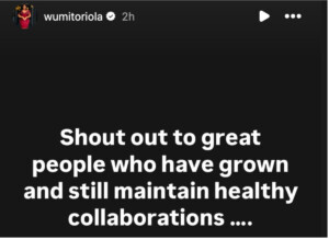 “Shout out to great people who have grown and still maintain healthy collaborations…” she added.